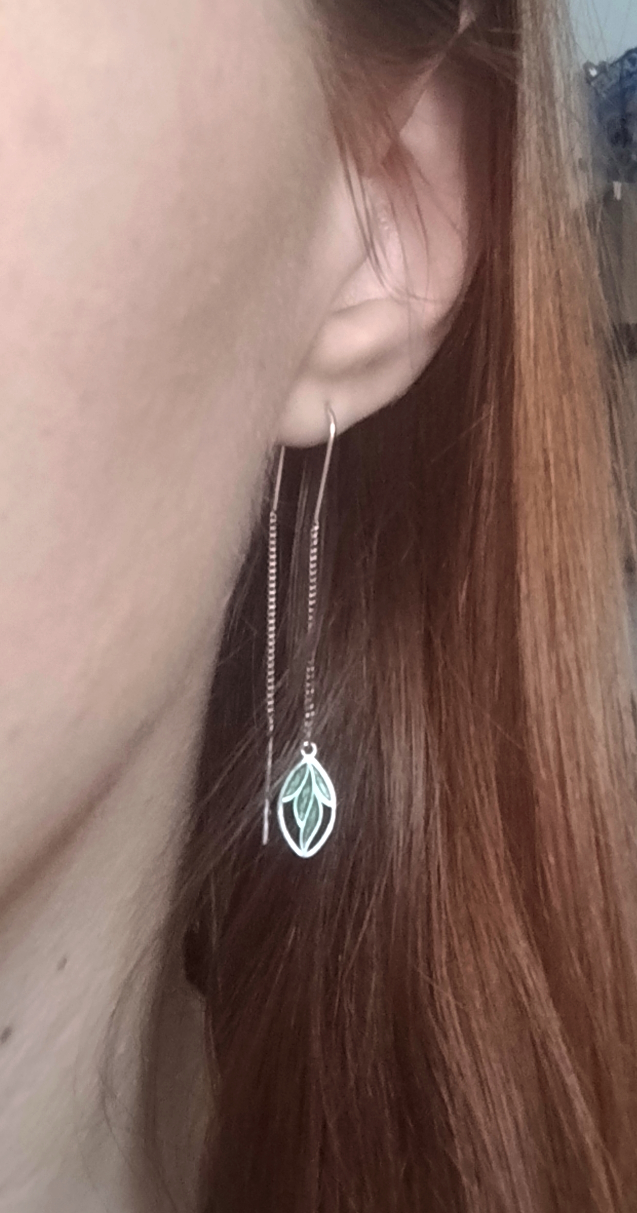 Словно нежный молодой листочек качается на ветру – такие ассоциации вызывают эти серьги. Декоративная часть в виде листика, покрытого горячей эмалью, не потеряет своего цвета со временем. А петля надежно фиксируется серьгу-продевку в мочке.